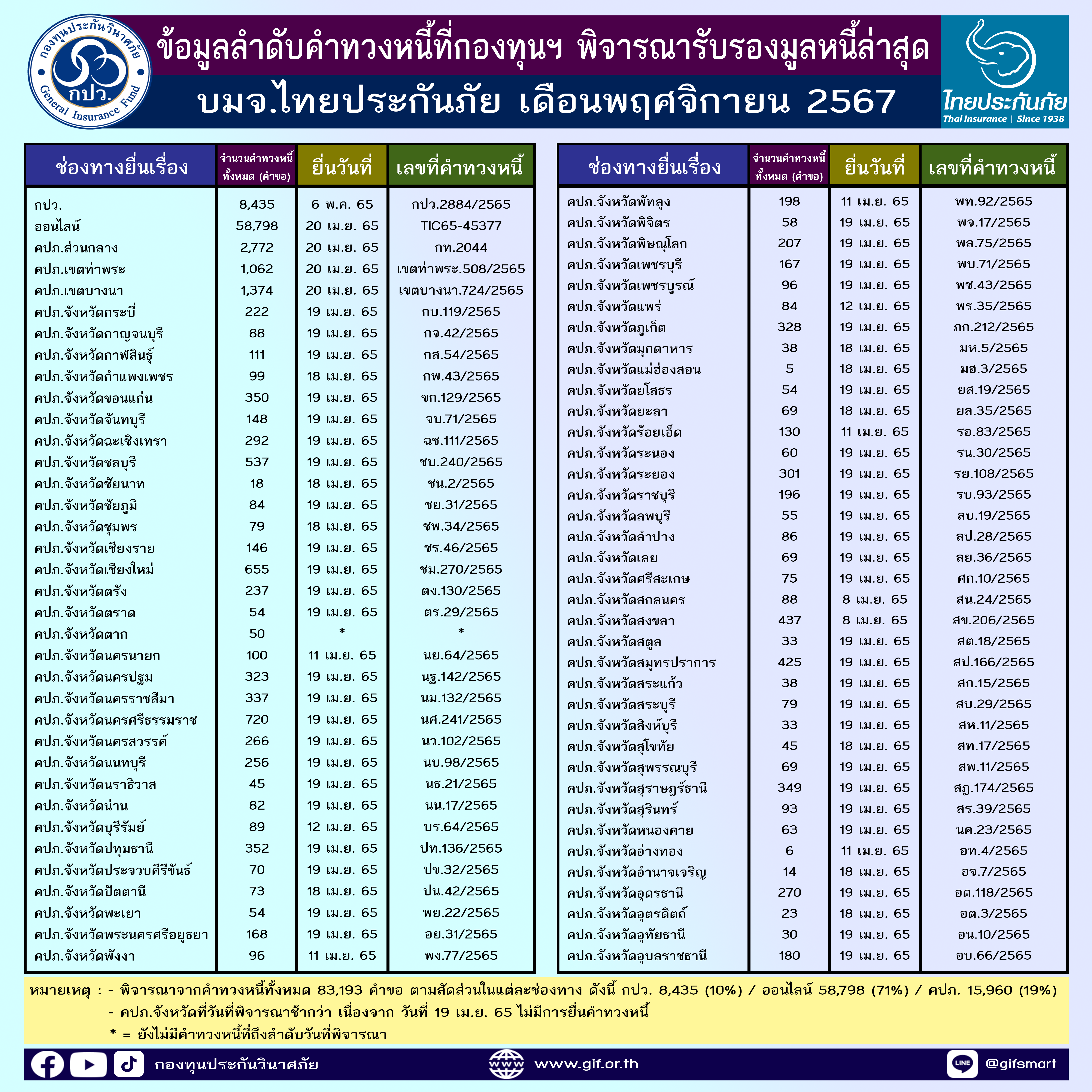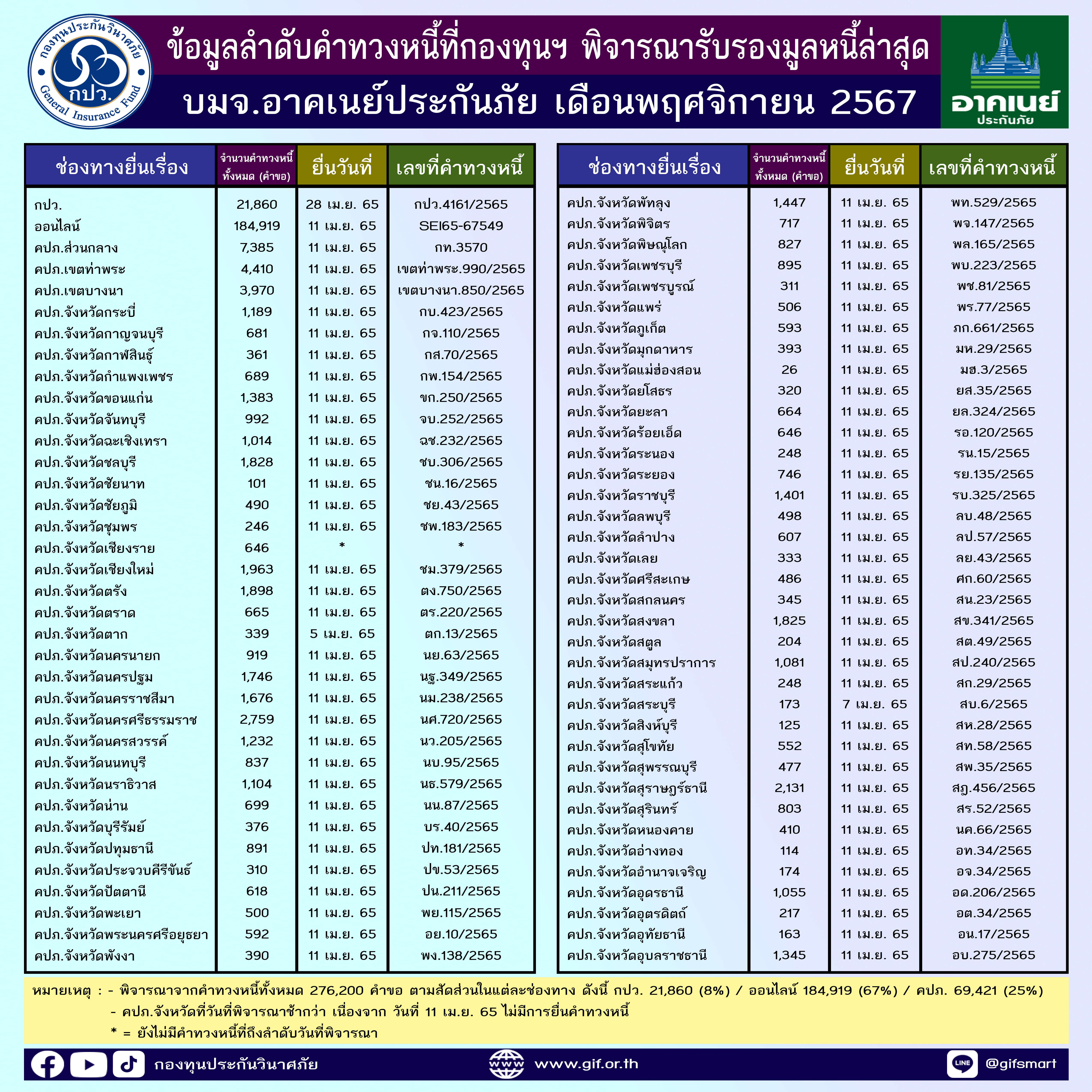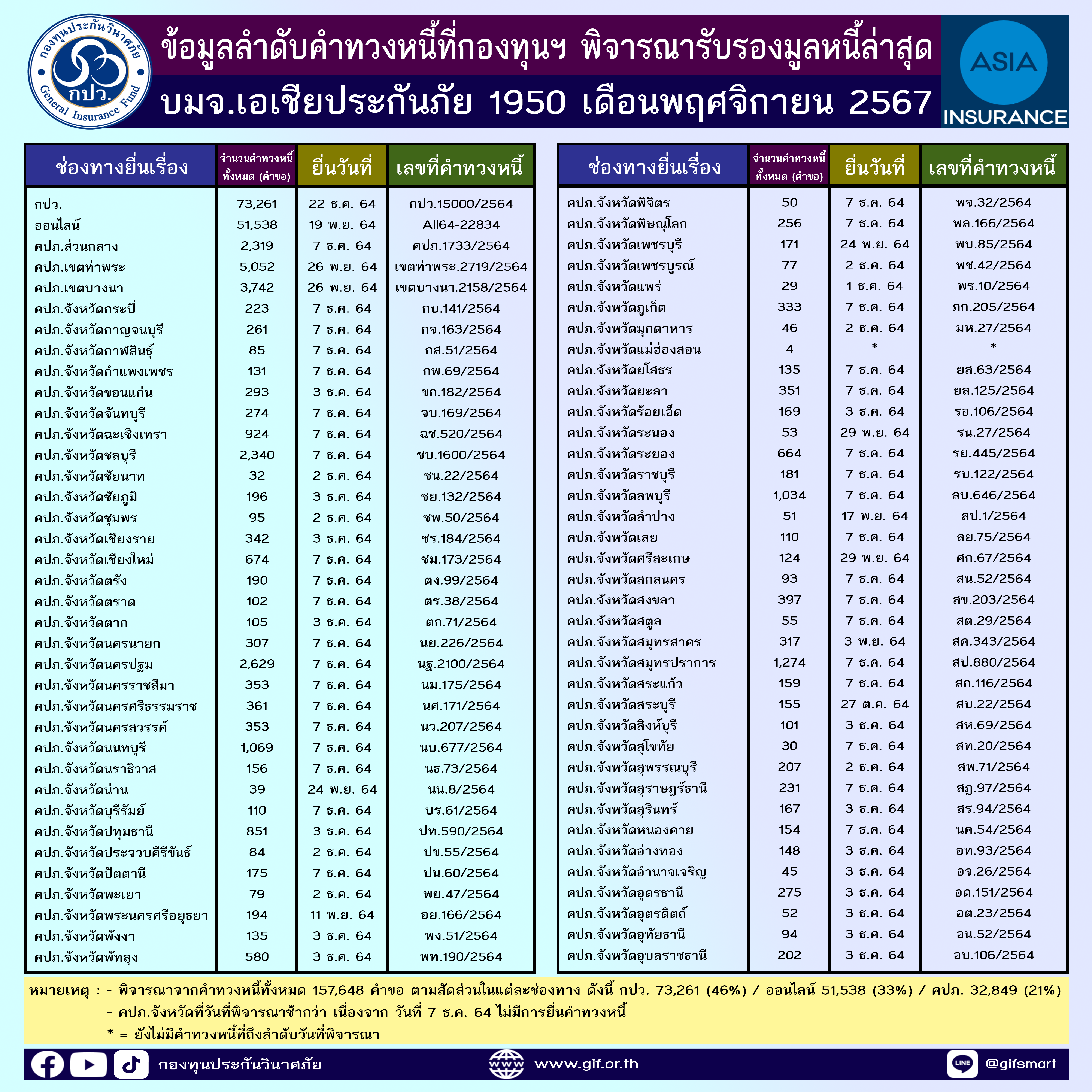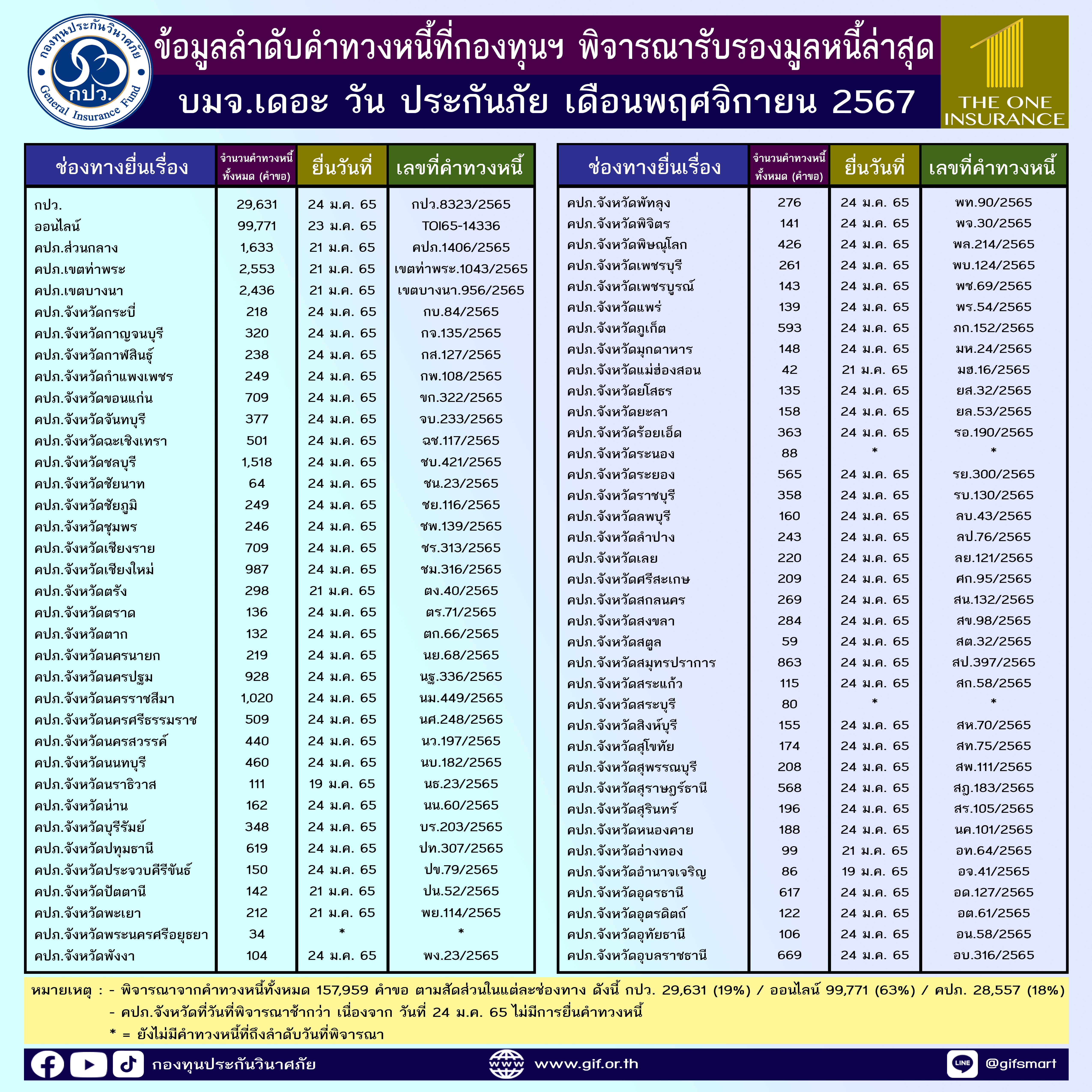 ข้อมูลลำดับคำทวงหนี้ที่กองทุนฯ พิจารณารับรองมูลหนี้ล่าสุด ประจำเดือนพฤศจิกายน 2567 ทั้ง 4 บริษัท