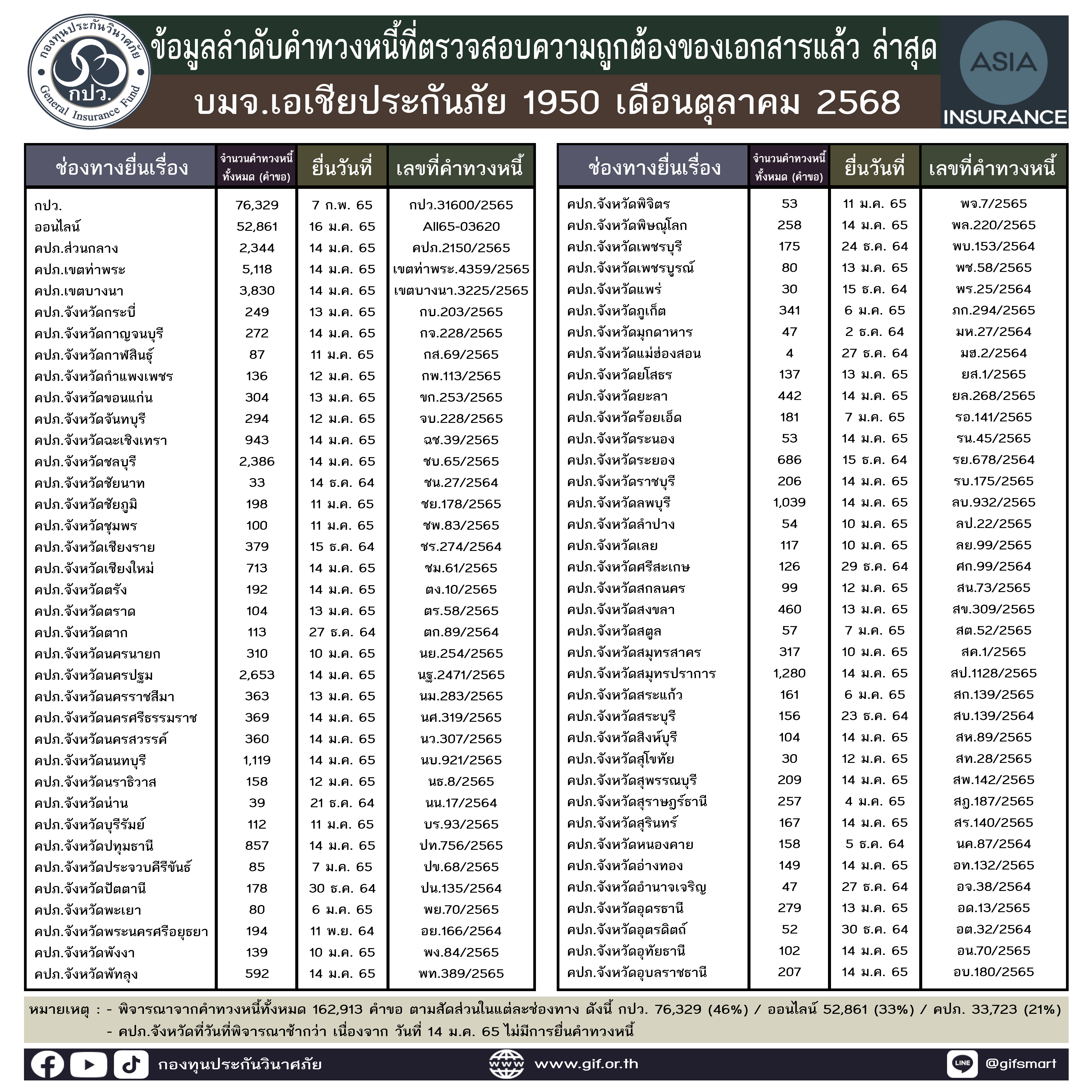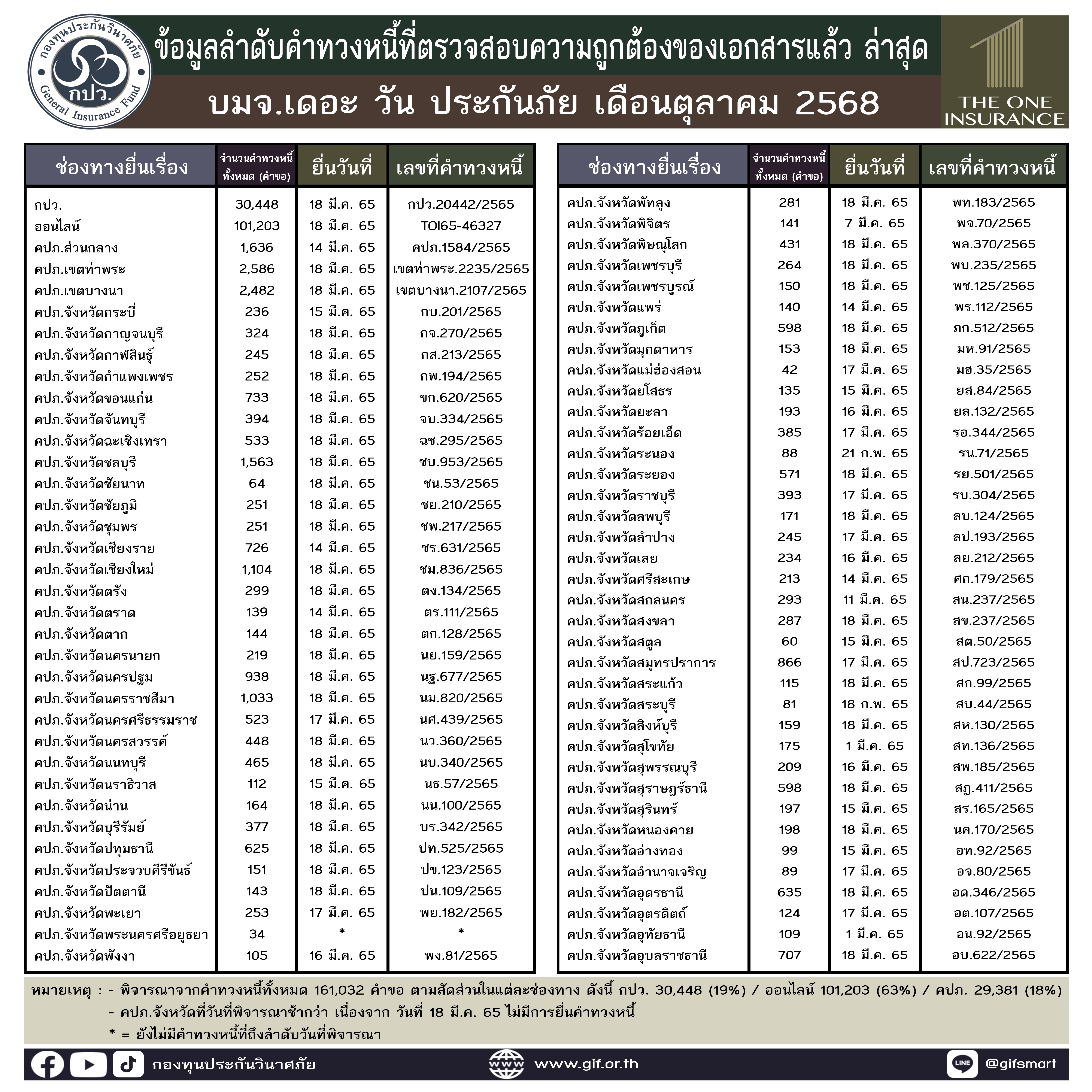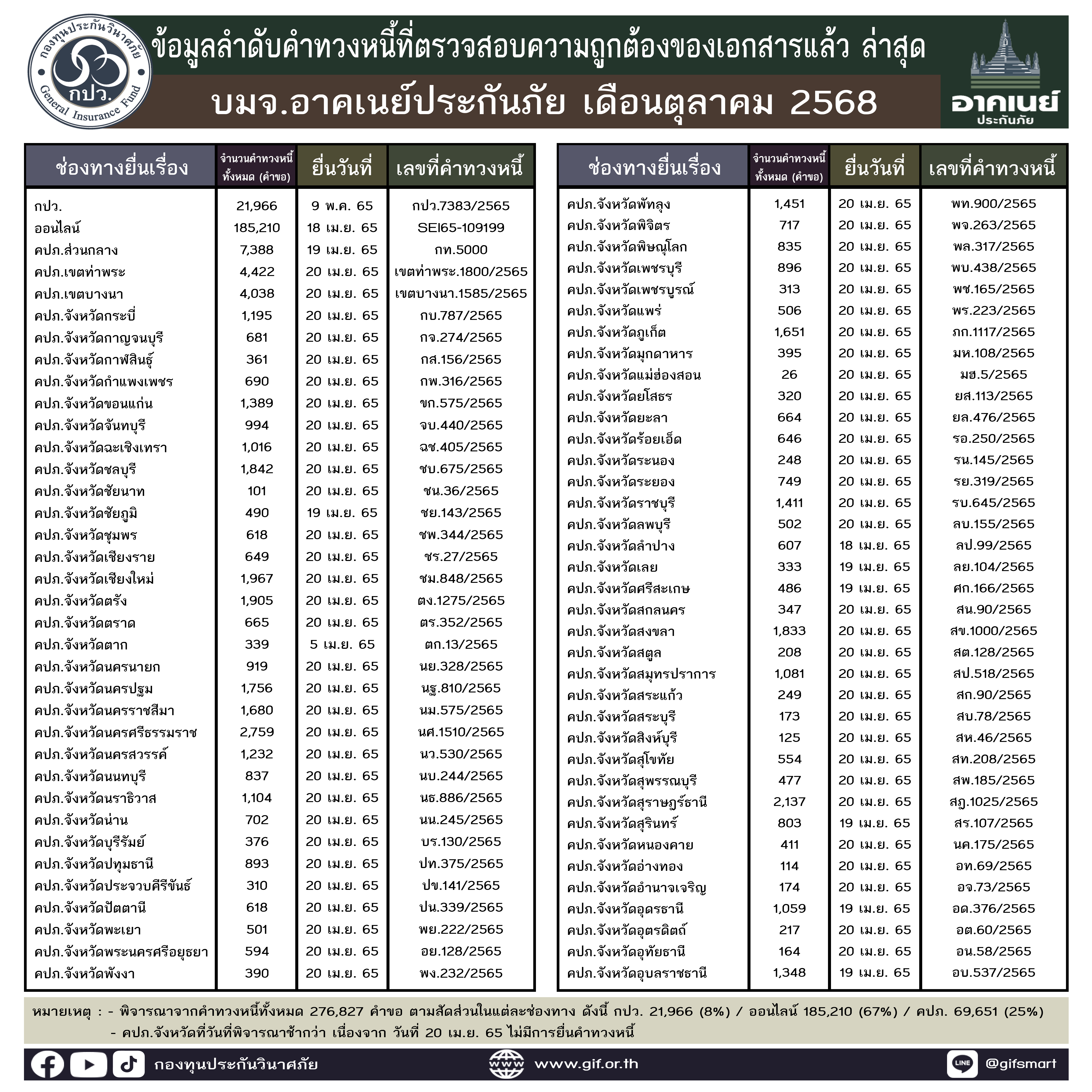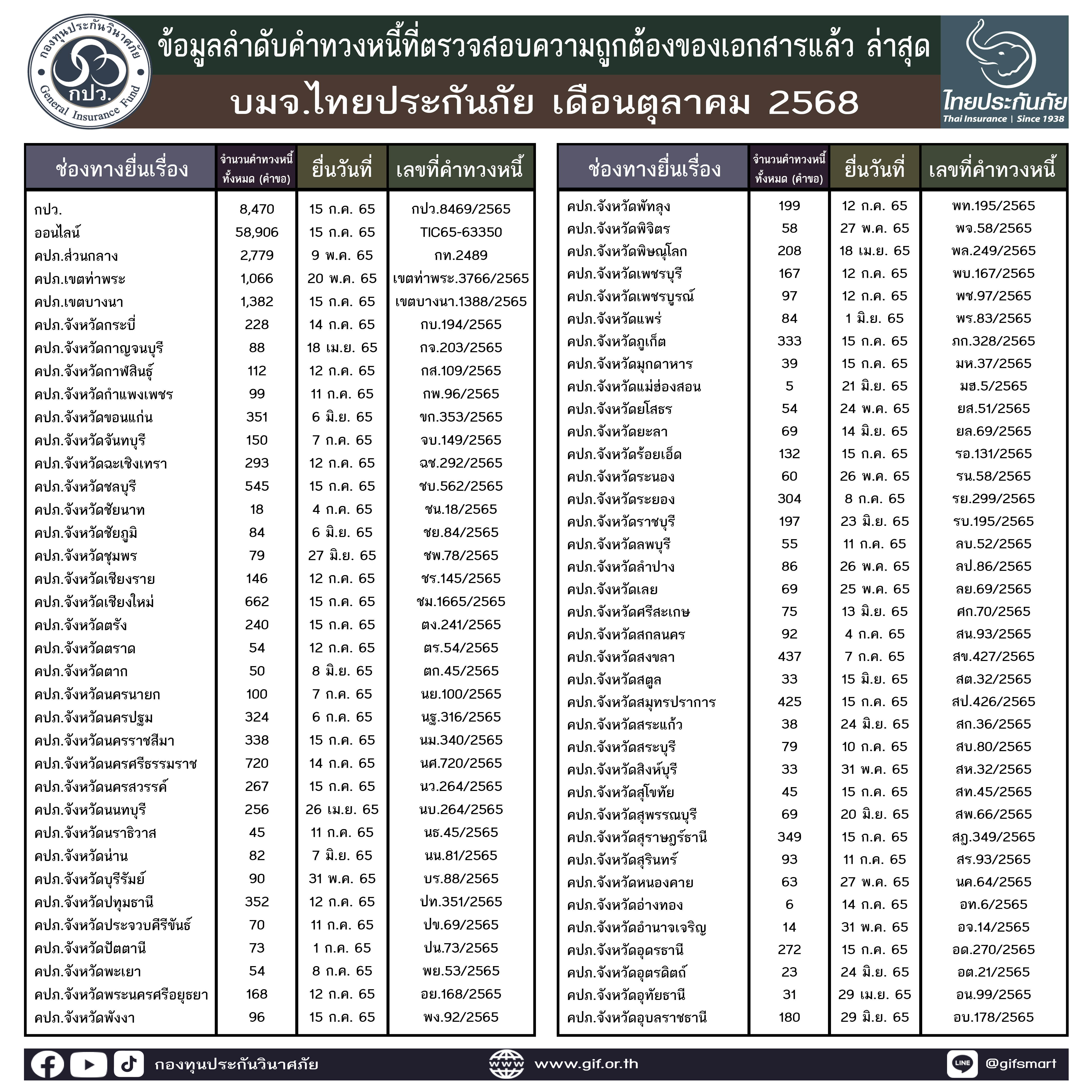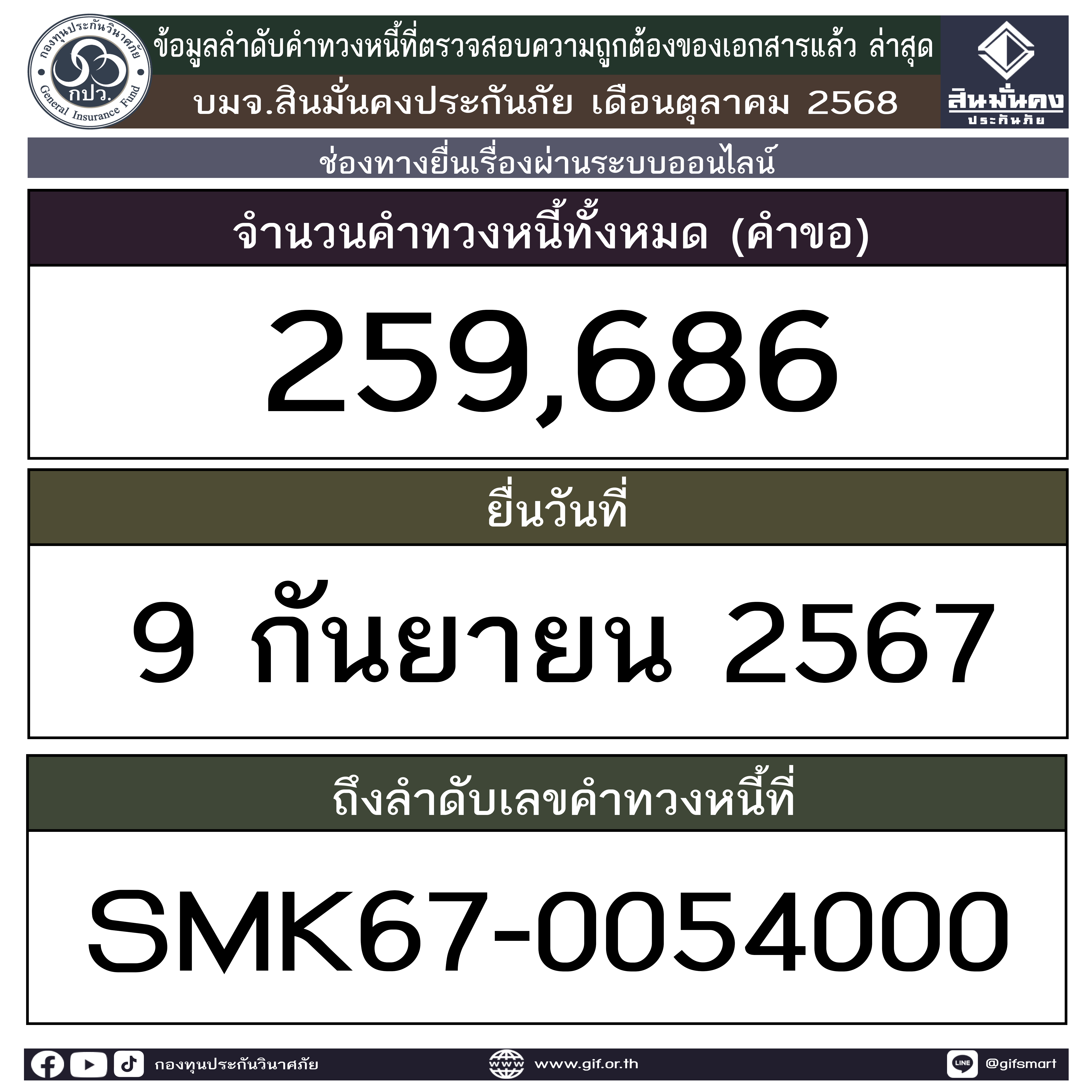 ข้อมูลลำดับคำทวงหนี้ที่ตรวจสอบความถูกต้องของเอกสารแล้ว ล่าสุด ประจำเดือนตุลาคม 2568 ทั้ง 5 บริษัท